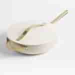 The Mega Deals Home 4-Piece Non-Stick Ceramic Cookware Set in Silt Green offers a perfect blend of modern design and premium performance. Each piece is crafted with an aluminum core for even heat distribution and coated with a non-toxic ceramic layer that ensures easy food release and cleanup—no harmful chemicals like PTFE, PFOA, or PFAS. The set includes essential cookware pieces: a frying pan, sauté pan, saucepan with lid, and Dutch oven with lid—plus storage solutions to keep your kitchen organized. With its soft matte green finish and gold hardware, this cookware set adds a sophisticated pop of color to your space while promoting healthier cooking.